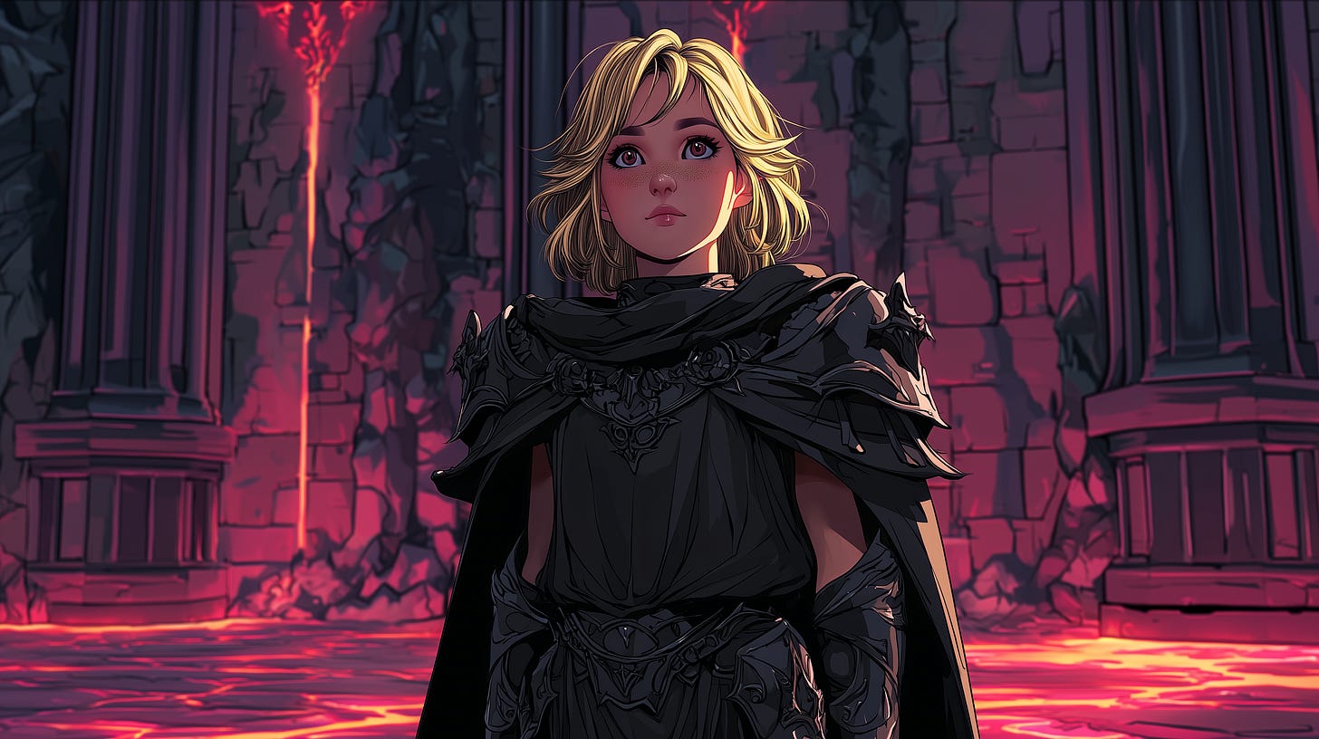“Valiant hero, I and my people thank you for your great deeds,” the King addressed Aurelio directly. It was the dawning of a new day, and early morning light illuminated the nobles-filled throne room and sparkled off the King’s crown. Aurelio stood in a casual, relaxed pose while the young 10-year-old blonde girl next to him stood at full attention. The little girl was taking the situation seriously and hung on the King’s every word. “And as a reward, I give you my child’s hand i-” the King’s reward was interrupted.